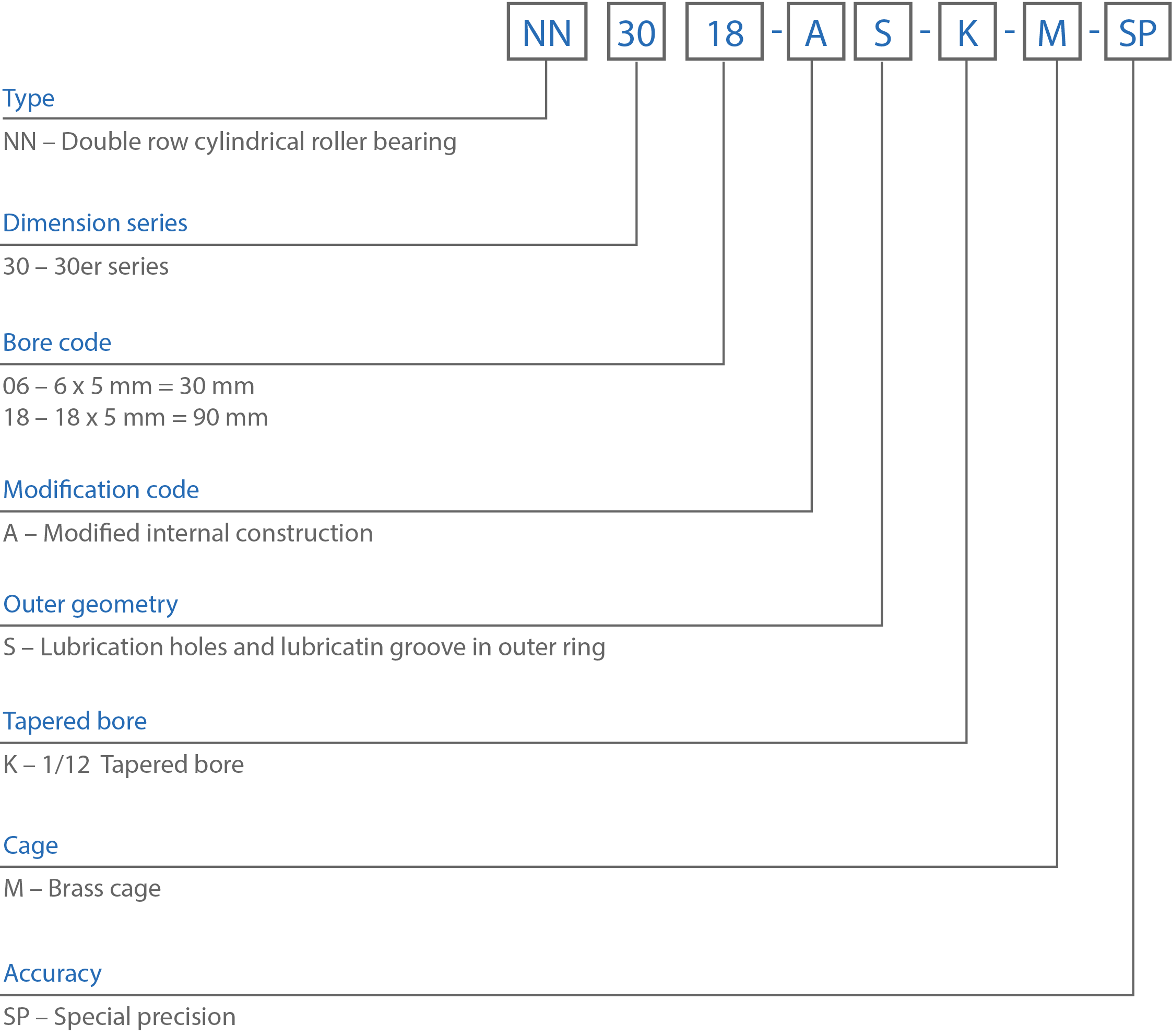 Конструкция N – внутреннее кольцо имеет два борта, на внешнем кольце бортов нет. Подшипник способен компенсировать осевое смещение вала относительно корпуса в двух направлениях благодаря внутреннему смещению колец.